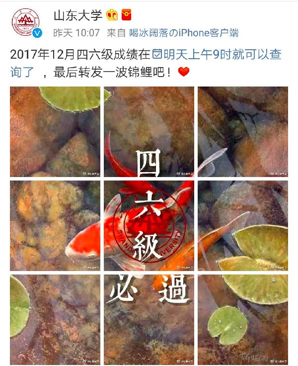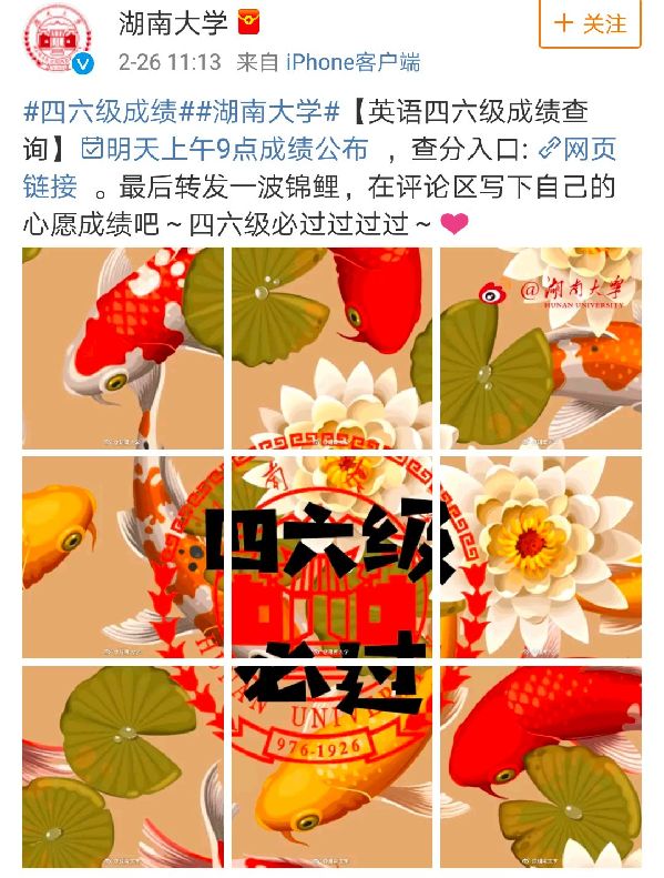 與此同時(shí),昨天不少高校微博也調(diào)皮了,有說(shuō)“轉(zhuǎn)發(fā)錦鯉”的: