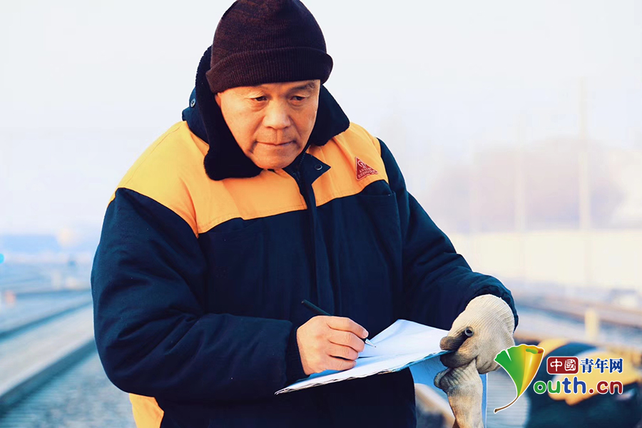 邰芳鵬正在記錄信號設(shè)備測試信息。春運一開始,他便和工友們利用天窗時間,開展信號設(shè)備檢查、巡視、養(yǎng)護工作。中國青年網(wǎng)通訊員 姚旭東 攝