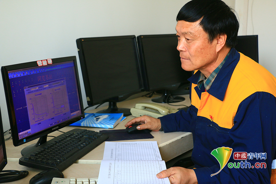 邰芳鵬年近60歲,雖然體力上不如年輕人,但他從來不服輸。如今,南疆鐵路已升級為計算機聯(lián)鎖設(shè)備,邰芳鵬也緊跟時代步伐,學(xué)習(xí)計算機操作?,F(xiàn)在他對計算機監(jiān)測設(shè)備也能進行熟練操作和分析。中國青年網(wǎng)通訊員姚旭東 攝