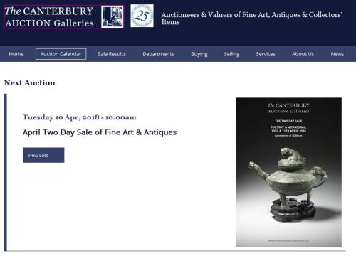 記者注意到,這件“虎鎣”出現(xiàn)在英國坎特伯雷拍賣廊拍賣日程表中。網(wǎng)頁顯示,這場拍賣會將于4月在當?shù)亻_拍。