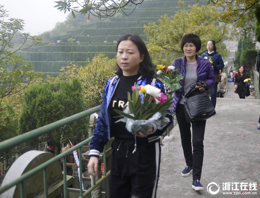 4月5日清明節(jié)上午,前往浙江省定舟山市定海區(qū)清陵掃墓人絡(luò)繹不絕,不少掃墓人用鮮花祭祀,寄托哀思懷念逝去的親人,倡導(dǎo)環(huán)保綠色的清明。(浙江在線拍友 胡社友 攝)