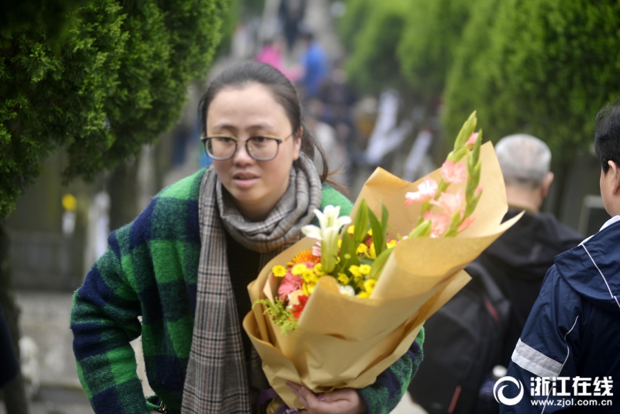 4月5日清明節(jié)上午,前往浙江省定舟山市定海區(qū)清陵掃墓人絡(luò)繹不絕,不少掃墓人用鮮花祭祀,寄托哀思懷念逝去的親人,倡導環(huán)保綠色的清明。(浙江在線拍友 胡社友 攝)