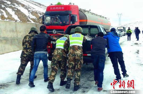 4月15日,受強(qiáng)冷空氣影響,西藏藏東南區(qū)域普降暴雪,致使川藏線昌都市左貢縣境內(nèi)東達(dá)山段交通中斷,造成600余臺車輛滯留。