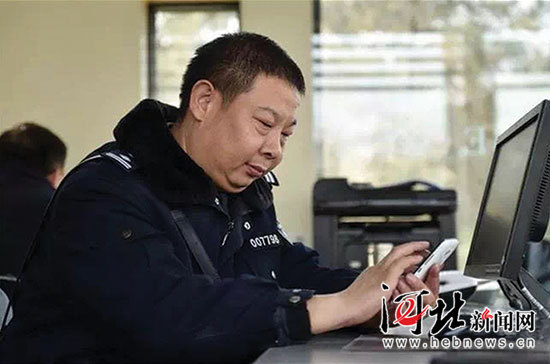 呂建江在工作中利用微博微信回復網友提問。記者田明、史晟全攝影報道(資料照片由河北省公安廳新聞中心、石家莊市公安局橋西分局提供)