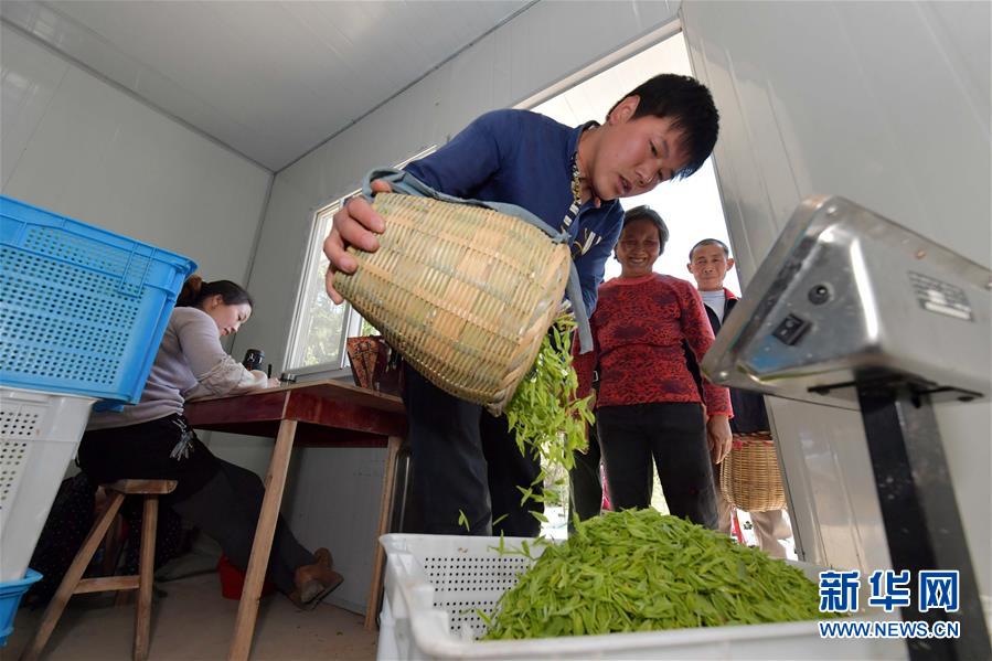 在江西省樂平市高家鎮(zhèn)朱家村高家白茶基地,工人在茶園里收購春茶,這里是江西“一村一名大學(xué)生”工程的教學(xué)實踐基地之一(3月28日攝)。新華社記者彭昭之?dāng)z