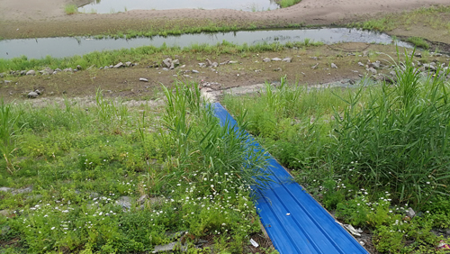 一家離某縣城較近的農莊,排污的場景更為觸目驚心。當半月談記者詢問農莊老板,污水如何排放?這位女老板的回答是:“我們排到了下水道?!笨僧斢浾咦叩綇N房背后,一股臭味迎面撲來,只見旁邊一個小水塘里,堆滿黑色或者黃色的濕乎乎、黏稠狀污物。水塘一側,是稻田和一條灌溉水渠——原來,這就是所謂的“下水道”。