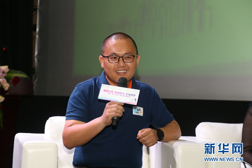 ↑新華網(wǎng)體育總經(jīng)理侯大偉在發(fā)布會現(xiàn)場。新華網(wǎng)宋溪雨 攝