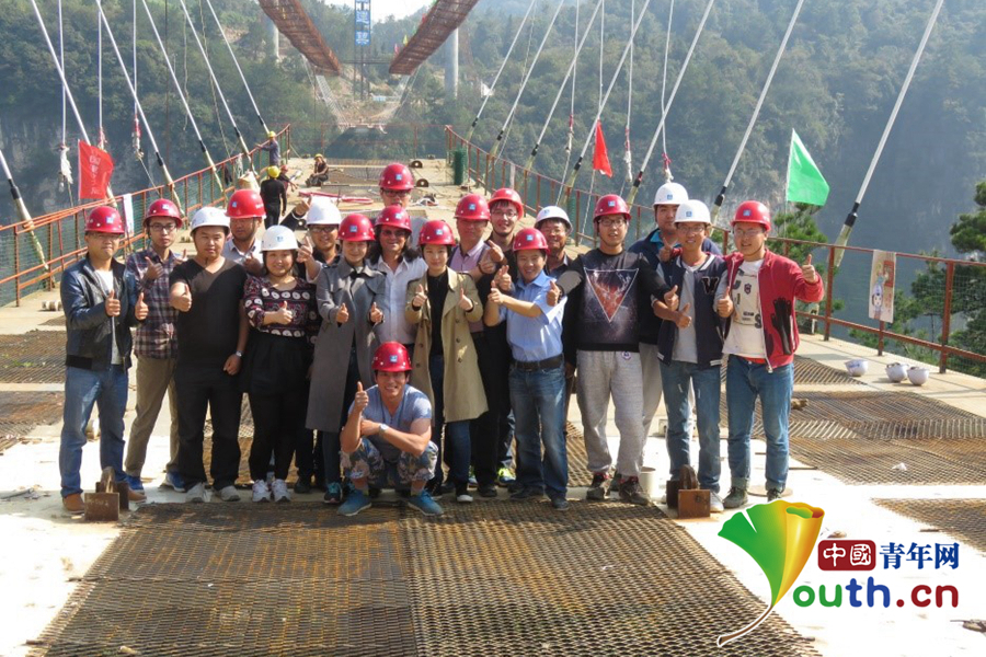 張家界大峽谷玻璃橋建設(shè)團(tuán)隊(duì)合影。本人供圖