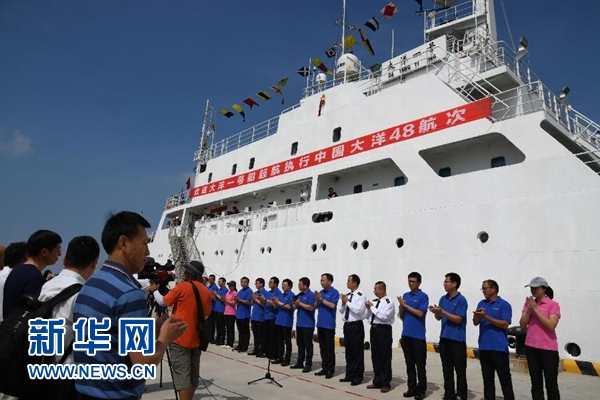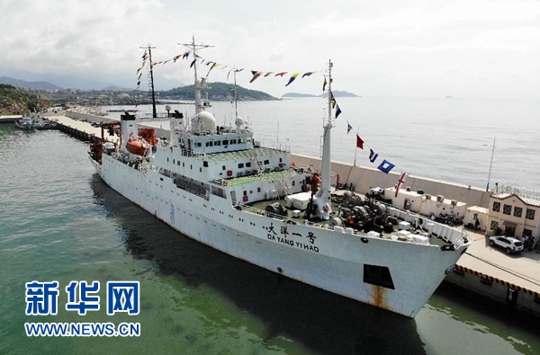 7月31日,在位于山東省青島市的國(guó)家海洋局北海分局科考基地碼頭,“大洋一號(hào)”科考船準(zhǔn)備起航。新華社記者 李紫恒 攝