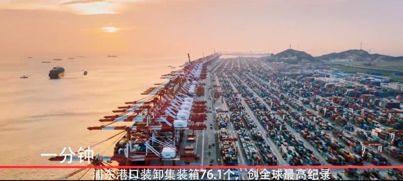 一分鐘,浦東港口裝卸集裝箱76.1個,全年集裝箱年吞吐量近4000萬標箱,創(chuàng)全球港口集裝箱運輸史最高紀錄。