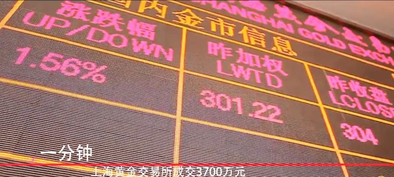 一分鐘,上海黃金交易所成交3700萬元,全年成交約19.52萬億元。