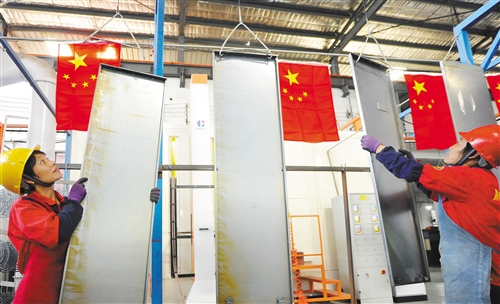 圖② 9月30日,江西省新余市渝水區(qū)珠珊鎮(zhèn)板橋工業(yè)園,江西劍安消防設(shè)備有限公司的生產(chǎn)車間里,員工忙生產(chǎn),為國(guó)慶獻(xiàn)禮。 鐘婷 攝