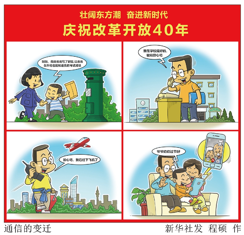通信:以前,我們靠寫信,讓爸媽在外地也能知道我們的考試成績(jī);后來(lái),我們用座機(jī),告訴爸媽“我在學(xué)校挺好的”;再后來(lái),我們無(wú)論出行到哪里,都可以隨時(shí)拿出手機(jī)跟家人說(shuō)聲“放心吧”;如今,我們更加可以方便地打開(kāi)手機(jī)視頻,問(wèn)候爺爺奶奶“過(guò)節(jié)好”。↓↓
