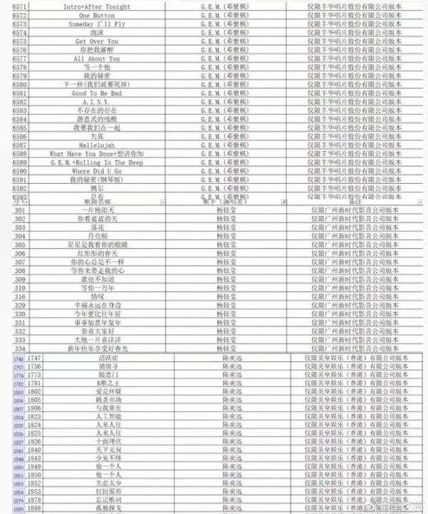 附件中共列出6609部要求下架的音樂電視作品。記者發(fā)現,陳奕迅的《十年》《圣誕結》、信樂團的《死了都要愛》等大家耳熟能詳、幾乎是KTV必點曲目,也都在“下架”之列。