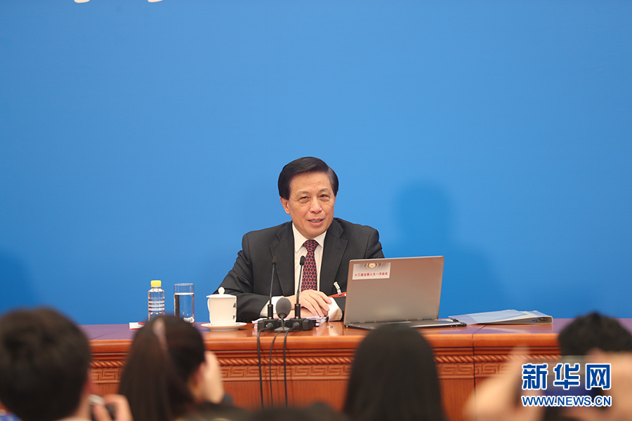 3月4日,十三屆全國(guó)人大一次會(huì)議在人民大會(huì)堂新聞發(fā)布廳舉行新聞發(fā)布會(huì),由大會(huì)發(fā)言人張業(yè)遂就大會(huì)議程和人大工作相關(guān)的問題回答中外記者的提問。圖為張業(yè)遂回答記者提問。新華網(wǎng)/中國(guó)政府網(wǎng) 陳杰 攝