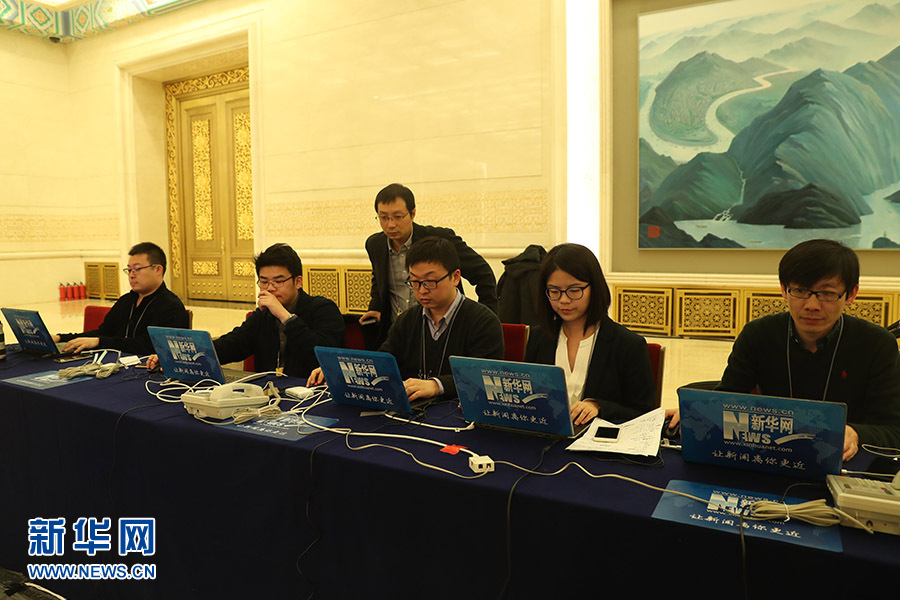 民主黨派中央和全國工商聯(lián)領(lǐng)導(dǎo)人記者會(huì)3月6日下午在人民大會(huì)堂金色大廳舉行,邀請(qǐng)民革中央主席萬鄂湘、民盟中央主席丁仲禮、民建中央主席郝明金、民進(jìn)中央主席蔡達(dá)峰、農(nóng)工黨中央主席陳竺、致公黨中央主席萬鋼、九三學(xué)社中央主席武維華、臺(tái)盟中央主席蘇輝、全國工商聯(lián)主席高云龍回答記者提問。圖為現(xiàn)場直播團(tuán)隊(duì)正在進(jìn)行準(zhǔn)備工作。新華網(wǎng)/中國政府網(wǎng) 陳杰 攝