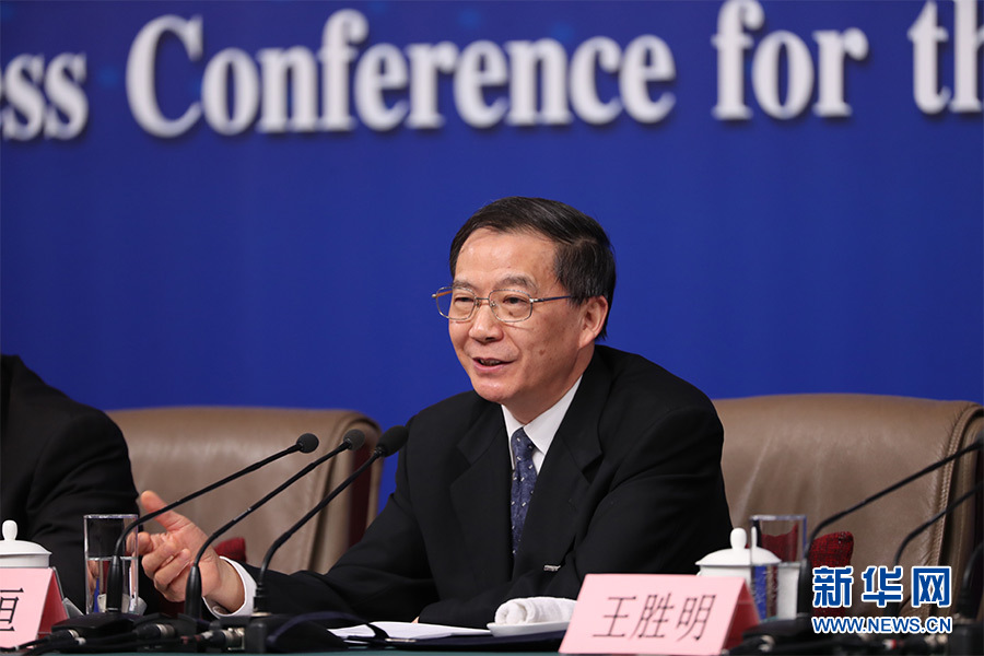 3月12日,十三屆全國人大一次會(huì)議新聞中心在梅地亞中心多功能廳舉行記者會(huì),邀請(qǐng)十二屆全國人大內(nèi)司委副主任委員王勝明、財(cái)經(jīng)委副主任委員烏日?qǐng)D、教科文衛(wèi)委副主任委員吳恒、環(huán)資委委員呂彩霞,全國人大常委會(huì)法工委副主任王超英、副主任許安標(biāo)就“人大立法工作”相關(guān)問題回答中外記者提問。圖為教科文衛(wèi)委副主任委員吳恒回答記者提問。新華網(wǎng)/中國政府網(wǎng) 翟子赫 攝