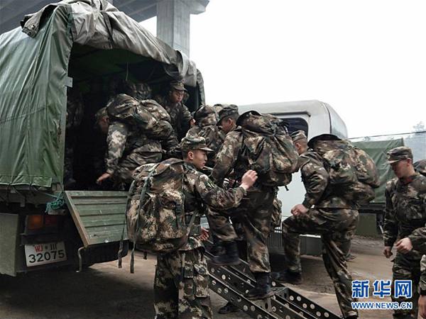 1月3日,武警宜賓支隊(duì)第一時(shí)間出動(dòng)人員趕赴震區(qū)救援。新華社發(fā)(鄭磊 攝)