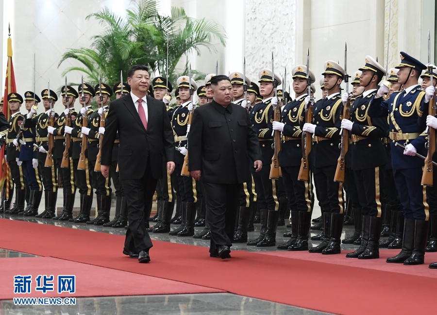 1月8日,中共中央總書記、國家主席習(xí)近平同當(dāng)日抵京的朝鮮勞動黨委員長、國務(wù)委員會委員長金正恩舉行會談。會談前,習(xí)近平在人民大會堂北大廳為金正恩舉行歡迎儀式。 新華社記者 李學(xué)仁 攝