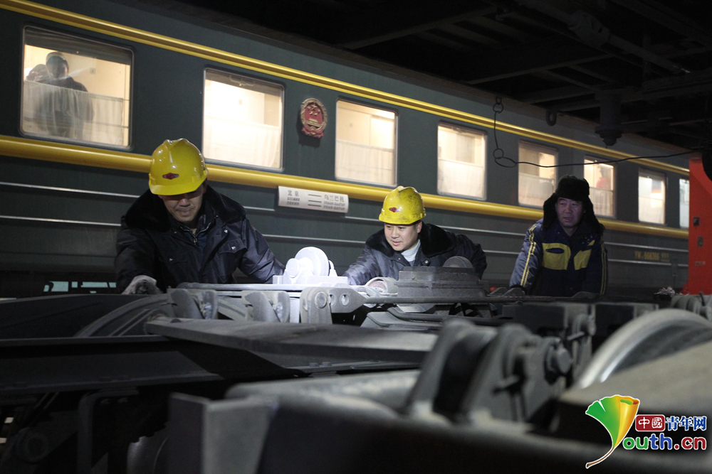 “365天都是一樣的,腦海里天天裝著的就是要把本職工作做好,要確保列車以最好的狀態(tài)出庫(kù)運(yùn)行,安安全全地把旅客送到俄羅斯,再把旅客安安全全地接回二連浩特?!闭勂疬^(guò)年,已經(jīng)在集寧車輛段二連浩特聯(lián)運(yùn)檢修車間工作19年的車間黨總支書記康亞斌有著自己的理解。