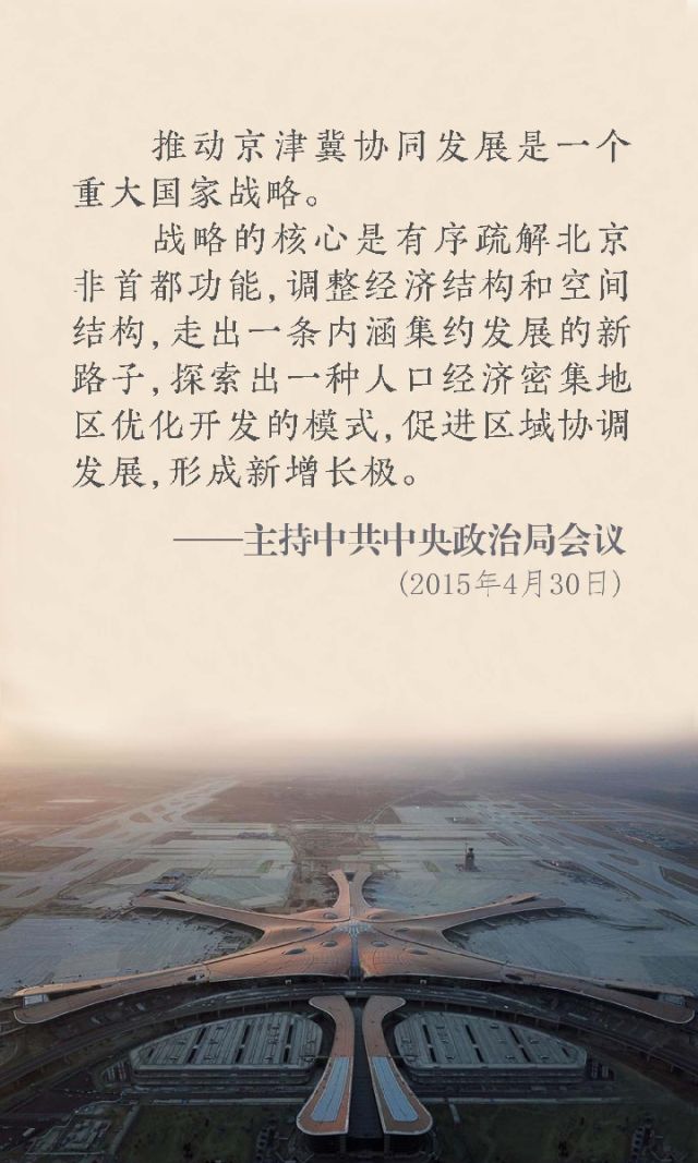 在京津冀協(xié)同發(fā)展每一個重要階段和關(guān)鍵環(huán)節(jié),習(xí)近平總書記都親自把脈定向,為京津冀協(xié)同發(fā)展工作指明方向??倳浂啻螐?qiáng)調(diào),京津冀協(xié)同發(fā)展是個大思路、大戰(zhàn)略,要通過疏解北京非首都功能,調(diào)整經(jīng)濟(jì)結(jié)構(gòu)和空間結(jié)構(gòu),走出一條內(nèi)涵集約發(fā)展的新路子,探索出一種人口經(jīng)濟(jì)密集地區(qū)優(yōu)化開發(fā)的模式,促進(jìn)區(qū)域協(xié)調(diào)發(fā)展,形成新增長極。