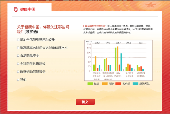 美好生活離不開健康,沒有全民健康,就沒有全面小康。在今年的兩會(huì)熱點(diǎn)調(diào)查中,健康中國(guó)引發(fā)網(wǎng)民普遍關(guān)注,排名靠前。