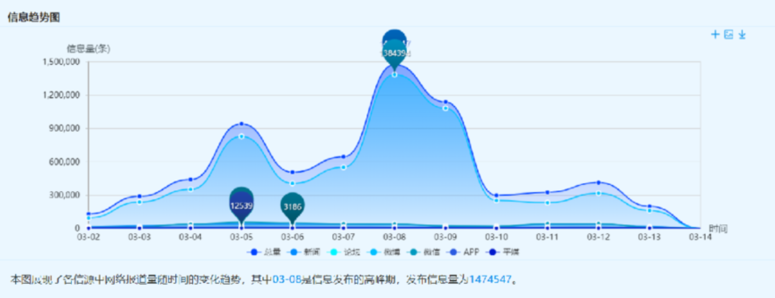 新華睿思大數(shù)據(jù)通過監(jiān)測(cè)新聞網(wǎng)站、論壇、微信、微博、APP、平媒6個(gè)信源,分析結(jié)果顯示,截至目前,全國(guó)兩會(huì)開幕以來,關(guān)于健康中國(guó)的話題共6788791個(gè)。