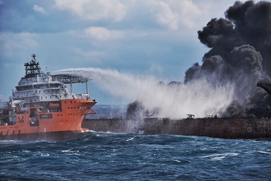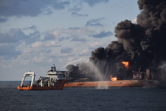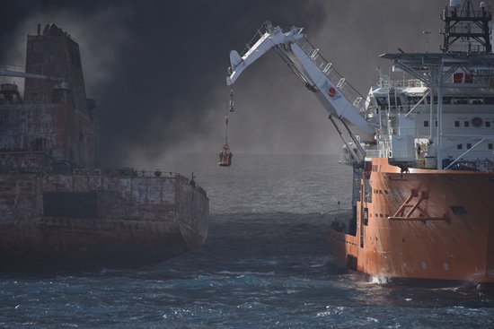 潛水隊(duì)員前往燃燒中的“桑吉”輪救援
