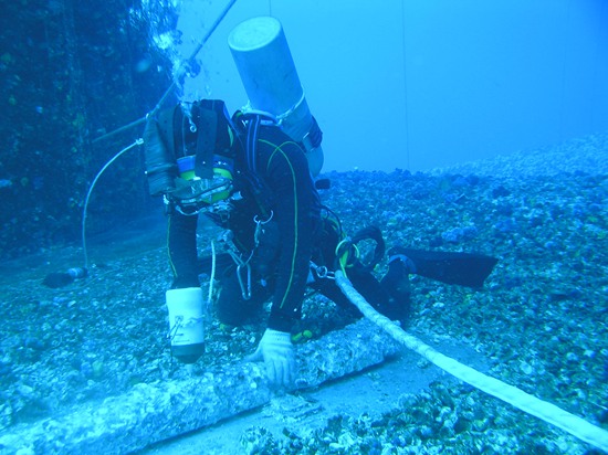 因?yàn)楣こ虧撍枰谒麻L(zhǎng)時(shí)間作業(yè),打撈局的潛水員們不能像人們常見(jiàn)的潛水員那樣,利用背后的氣瓶供氣。他們靠一根甘蔗粗細(xì)的長(zhǎng)管來(lái)維持水下的呼吸,在工程潛水領(lǐng)域,這根管子被稱作“臍帶”。