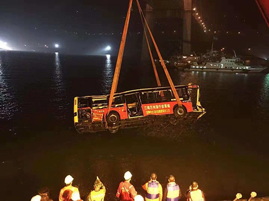 重慶萬(wàn)州墜江公交車被吊起