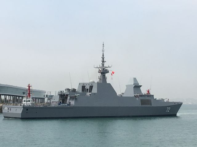 據(jù)了解,新加坡海軍“堅強(qiáng)”號護(hù)衛(wèi)艦(舷號72),排水量3200噸,長114.8米,寬16.3米,桅高35米,航速27節(jié)。