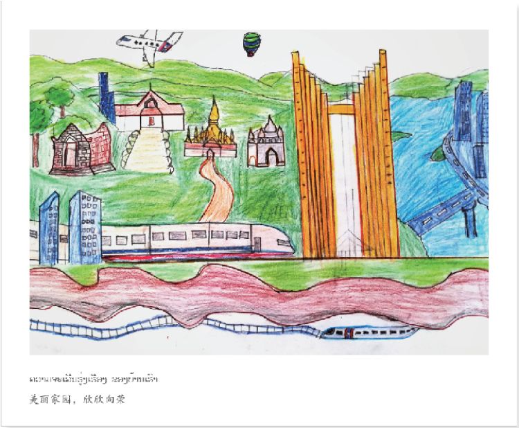 58幅天真爛漫的畫作,寓意中老建交58周年的深情厚誼。孩子們希望通過畫中的學(xué)校、家鄉(xiāng)、世界和夢(mèng)想,展示“一帶一路”為他們的生活帶來的變化,與習(xí)近平主席分享心中滿滿的喜悅和幸福。