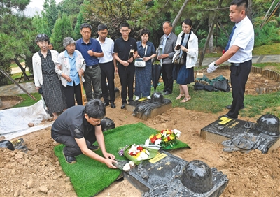 昨日早晨8點,在親屬陪伴下,第250份烈士骨灰由八寶山革命公墓烈士骨灰堂遷葬至公墓新建的烈士紀(jì)念園。按計劃,革命公墓烈士骨灰堂現(xiàn)存的680份骨灰將于本月底前完成遷葬。