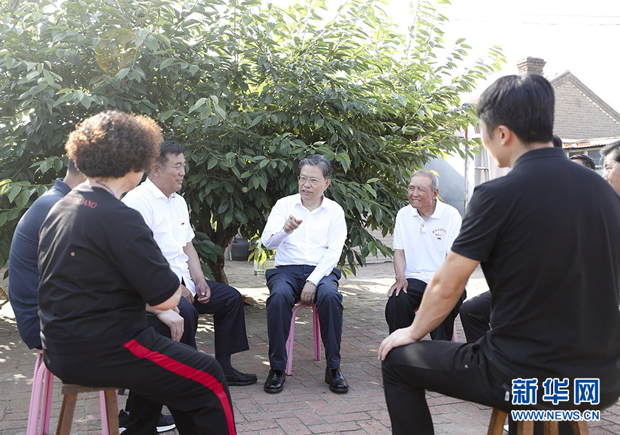 6月19日至21日,中共中央政治局常委、中央紀(jì)委書記趙樂際到遼寧省調(diào)研。這是6月19日,趙樂際在遼寧省海城市朱家村與村干部和村民代表面對面交流。 新華社記者 丁海濤 攝