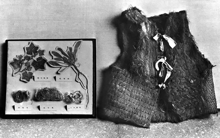 這就是紅軍長征時(shí)吃過的野菜標(biāo)本和穿過的棕背心。