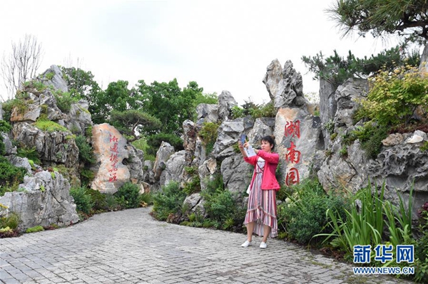 7月7日,2019北京世園會迎來以“湘遇·桃花源”為主題的“湖南日”。湖南展園是以陶淵明千古名篇《桃花源記》所描述的“世外桃源”真跡地——桃花源為原型,采用160多個植物品種,串聯(lián)“武陵山石”“洞庭春暉”“桃源尋夢”等多個創(chuàng)意,將“綠色生活,美麗家園”的理念濃縮在精致的園林場境中。