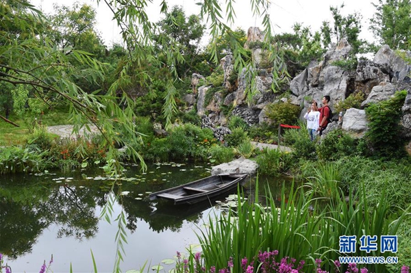 7月7日,游客在湖南園中參觀。當(dāng)日,2019年中國北京世界園藝博覽會“湖南日”活動在北京世園會園區(qū)舉行。新華社發(fā)(任超 攝)