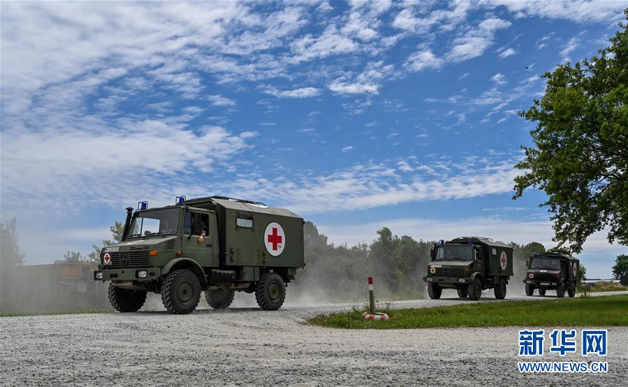 這是7月5日在德國費爾德基興訓練基地拍攝的中德“聯(lián)合救援-2019”衛(wèi)勤實兵聯(lián)合演習整合訓練現(xiàn)場。新華社記者 連振 攝