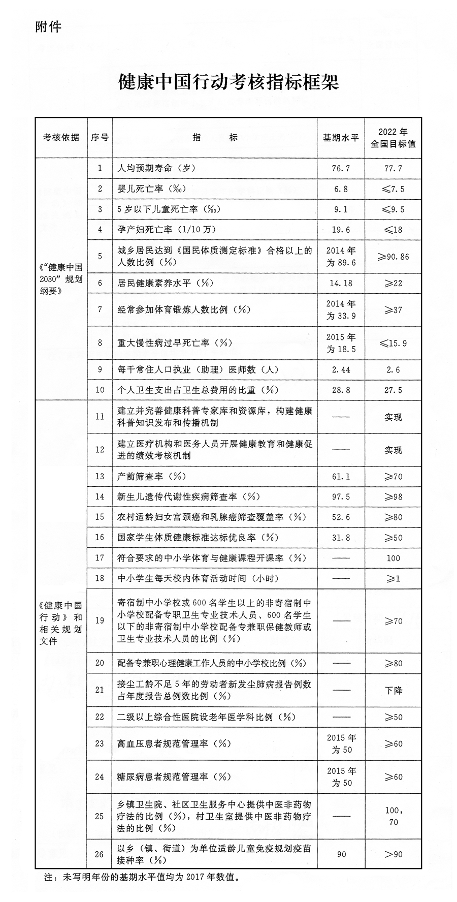 附件:健康中國行動考核指標(biāo)框架