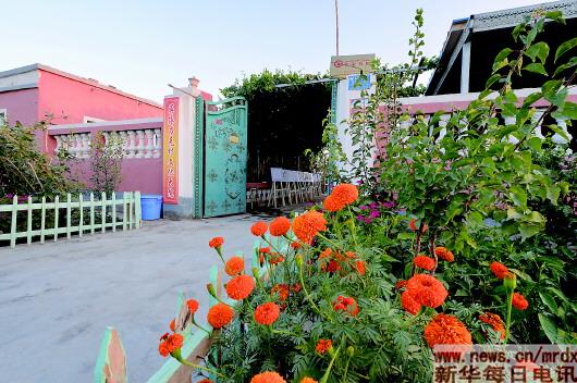 莎車(chē)縣維吾爾族農(nóng)戶的院子門(mén)前也栽滿了萬(wàn)壽菊花。