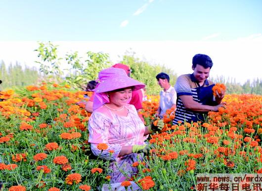 “種萬(wàn)壽菊增收快,訂單農(nóng)業(yè)很不錯(cuò)?!卑透癜⑼咛徉l(xiāng)巴格吉格代村貧困戶阿布力米提·賽麥提說(shuō),去年他只種了2.5畝萬(wàn)壽菊就掙了5000元。