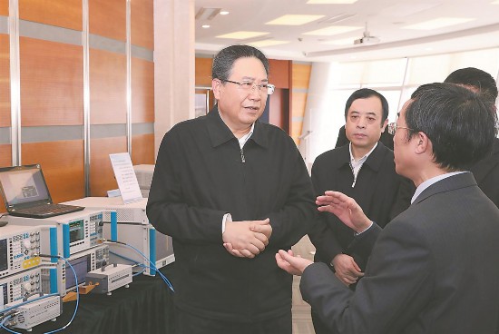 2月20日,安徽省委書記李錦斌來到中建材蚌埠玻璃工業(yè)設(shè)計研究院,在展示大廳參觀蚌埠市科技創(chuàng)新代表性企業(yè)產(chǎn)品。記者 徐國康 攝? 來源:安徽日報