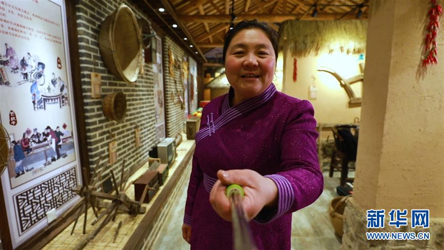 趙會(huì)杰在村里的民俗博物館自拍錄視頻,展示保留下來(lái)的老物件。 新華社發(fā)(視頻截圖)