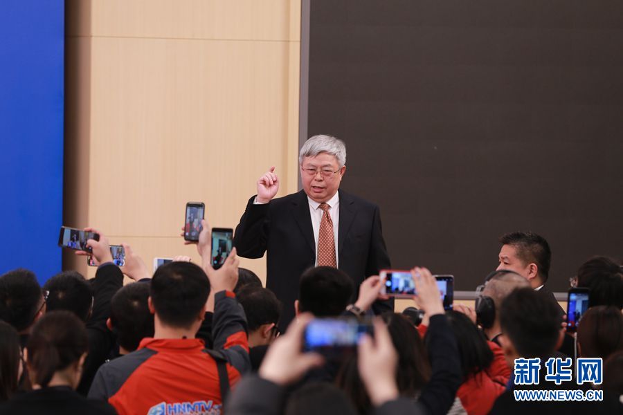 十三屆全國人大二次會議新聞中心于3月7日10時50分在梅地亞中心新聞發(fā)布廳舉行記者會,邀請國務(wù)院扶貧開發(fā)領(lǐng)導小組辦公室主任劉永富就“攻堅克難——堅決打贏脫貧攻堅戰(zhàn)”相關(guān)問題回答中外記者提問。圖為記者會結(jié)束后劉永富與記者們交流。新華網(wǎng)?劉廈 攝