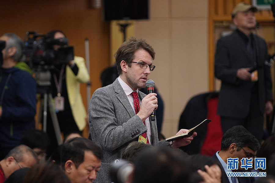 ????十三屆全國人大二次會議新聞中心3月7日9時在梅地亞中心新聞發(fā)布廳舉行記者會,邀請財政部部長劉昆,副部長程麗華、劉偉就“財稅改革和財政工作”相關問題回答中外記者提問。圖為彭博新聞社記者提問。新華網(wǎng)/中國政府網(wǎng) 劉廈 攝