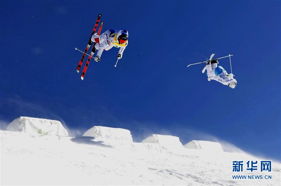 運(yùn)動(dòng)員在河北張家口市崇禮區(qū)太舞滑雪場參加自由式滑雪雪上技巧世界杯比賽(2018年12月16日攝)。新華社記者 楊世堯 攝