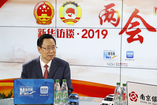 3月9日,全國(guó)人大代表,南京市委副書記、市長(zhǎng)藍(lán)紹敏做客新華網(wǎng)2019全國(guó)兩會(huì)特別報(bào)道。新華網(wǎng)?唐楊攝