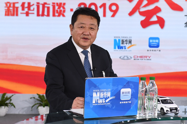 3月12日,全國人大代表、內(nèi)蒙古自治區(qū)呼和浩特市委副書記、市長馮玉臻做客新華網(wǎng)。新華網(wǎng) 李相博 攝
