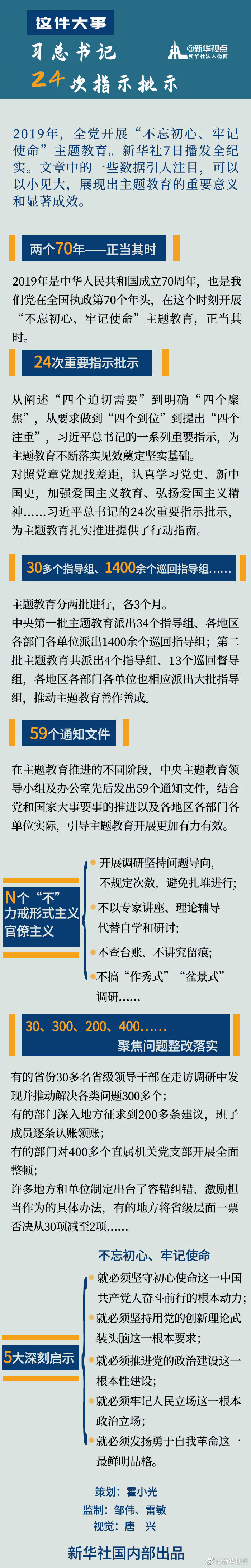 2019年,全黨開展“不忘初心、牢記使命”主題教育。新華社7日播發(fā)全紀(jì)實(shí)。文章中的一些數(shù)據(jù)引人注目,可以以小見大,展現(xiàn)出主題教育的重要意義和顯著成效。