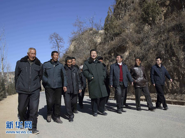 2015年2月中旬,習(xí)近平到陜西看望慰問群眾,特意找來當(dāng)年陜甘寧革命老區(qū)所屬范圍的市縣領(lǐng)導(dǎo)人,一起開了陜甘寧革命老區(qū)脫貧致富座談會,了解情況,明確思路,推進(jìn)工作。